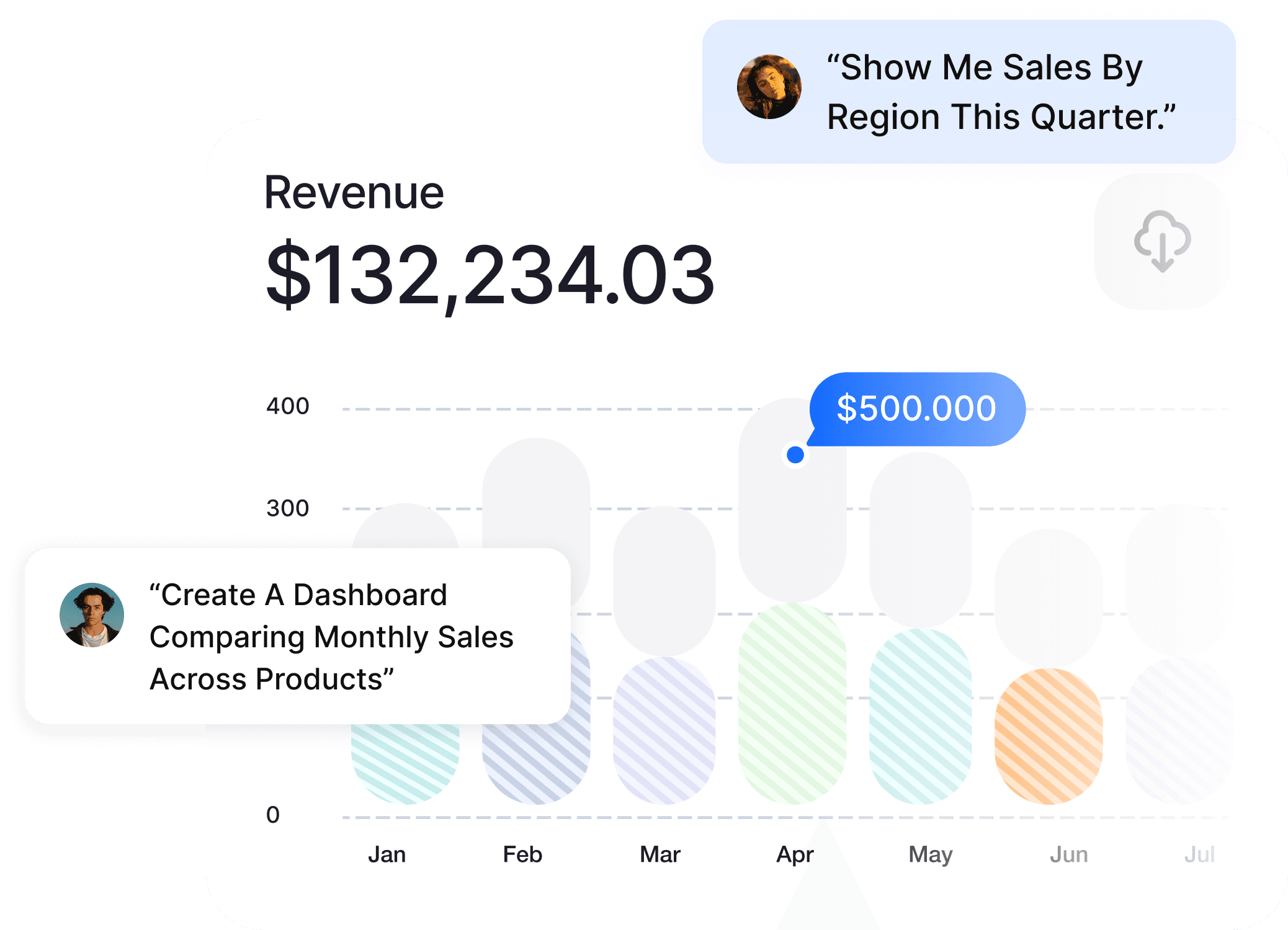 Connect your data sources from 100s of integrations and chat with AI to build dashboards instantly.
